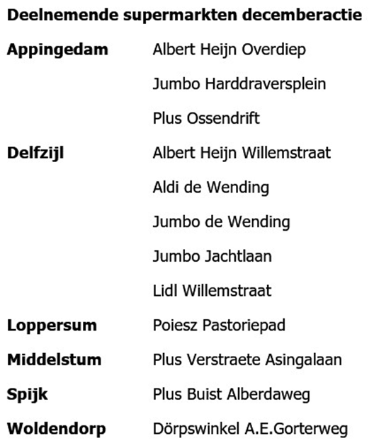 Eemsdelta – De Voedselbank Eemsdelta organiseert op vrijdag 12 en zaterdag 13 december een grootschalige inzamelingsactie bij supermarkten in de hele gemeente. De actie is dringend nodig om ervoor te zorgen dat de voedselbank wekelijks voldoende pakketten kan blijven samenstellen voor inwoners die afhankelijk zijn van hulp.