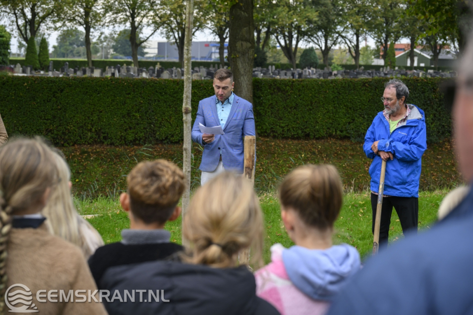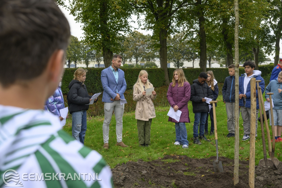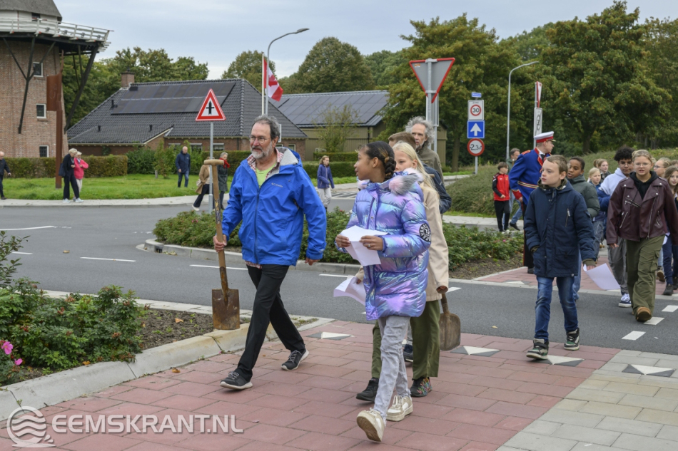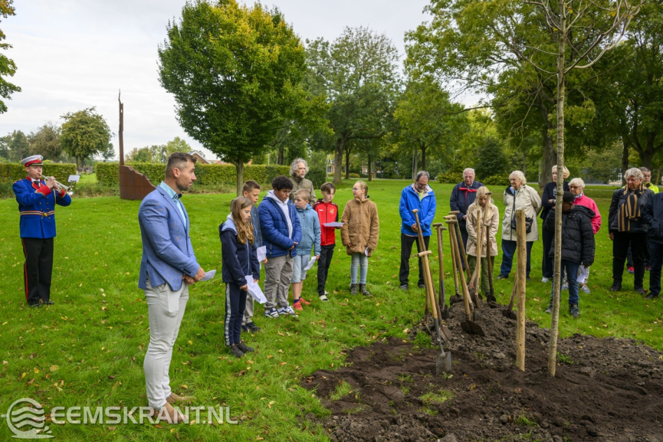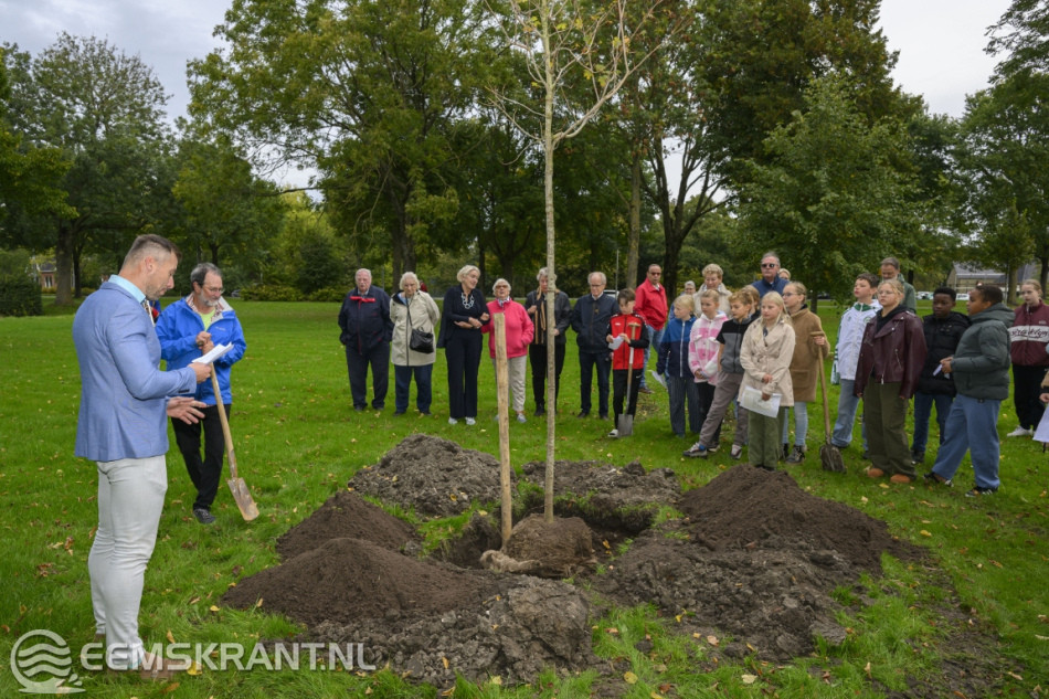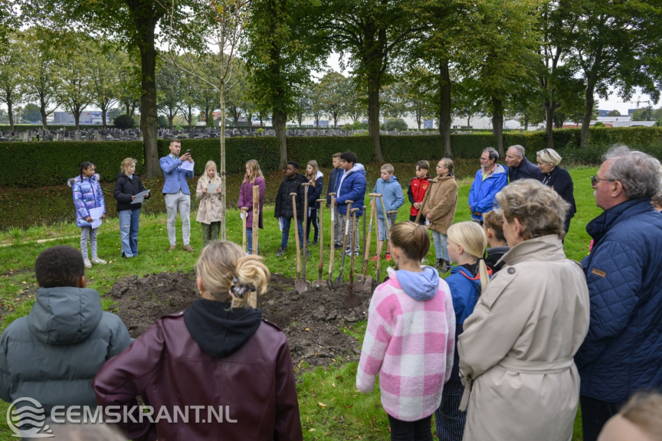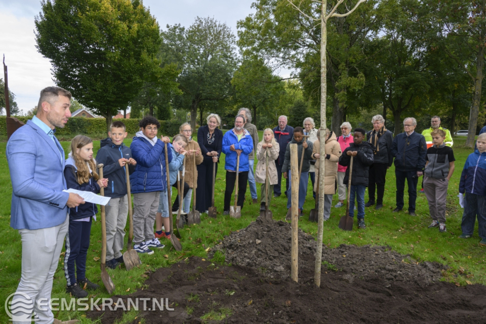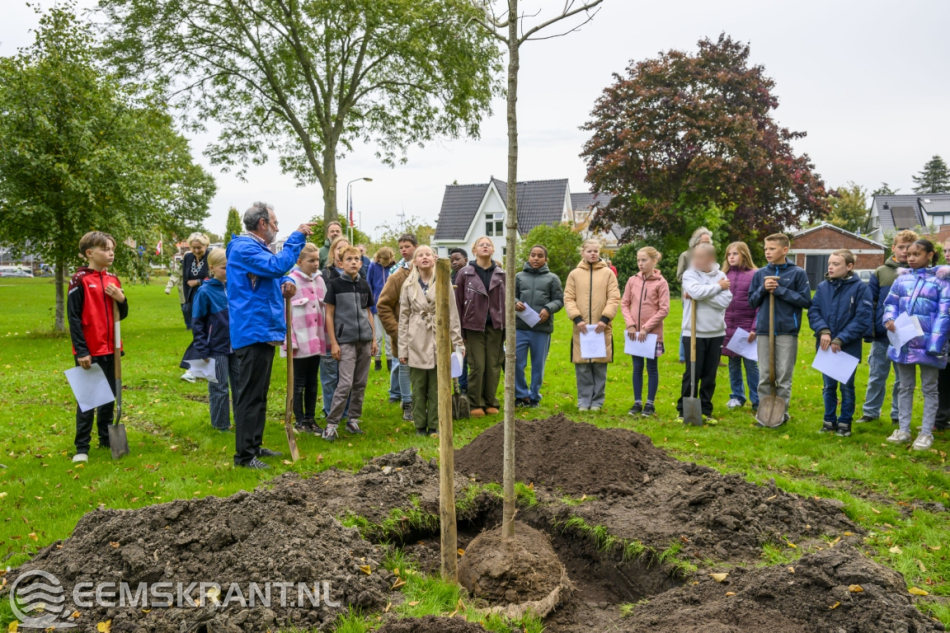 Farmsum – Aan de Bredelaan in Farmsum, vlak bij de begraafplaats, is vrijdagochtend een vrijheidsboom geplant door leerlingen van groep 7/8 van de Farmsumerborg, samen met de Canadese gast Jim Landry en locoburgemeester Annelies Usmany-Dallinga. De boom, een Canadese suikeresdoorn, is een eerbetoon aan alle Canadese militairen die onze regio in de Tweede Wereldoorlog hebben bevrijd, en in het bijzonder aan de vader van Landry, die vanaf de stranden van Normandië tot in Noord-Nederland vocht voor onze vrijheid.