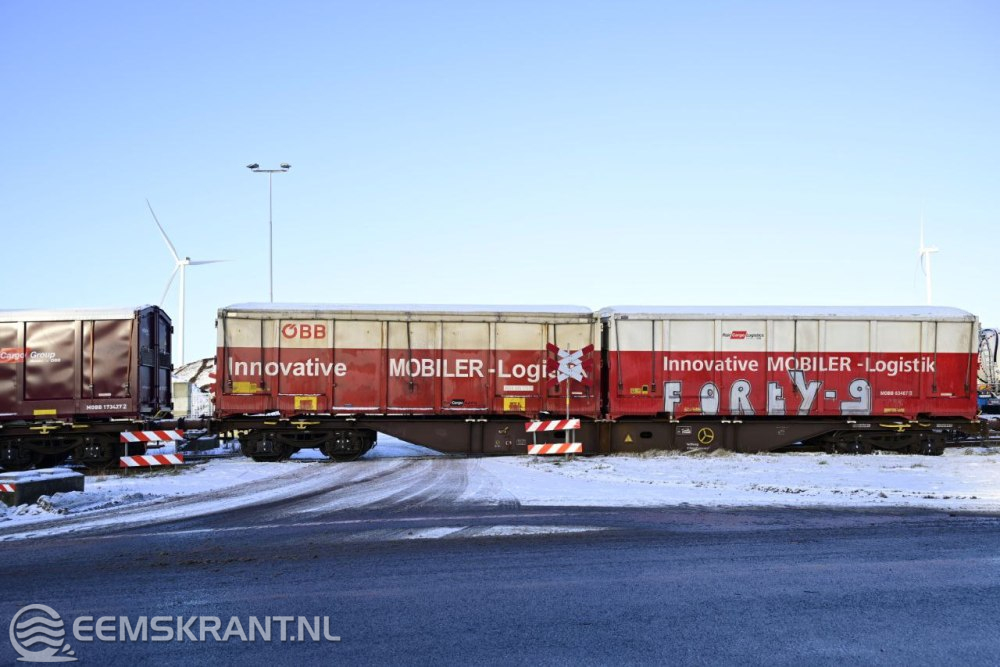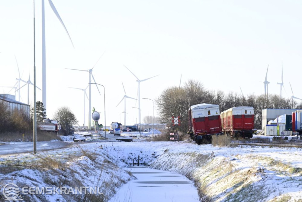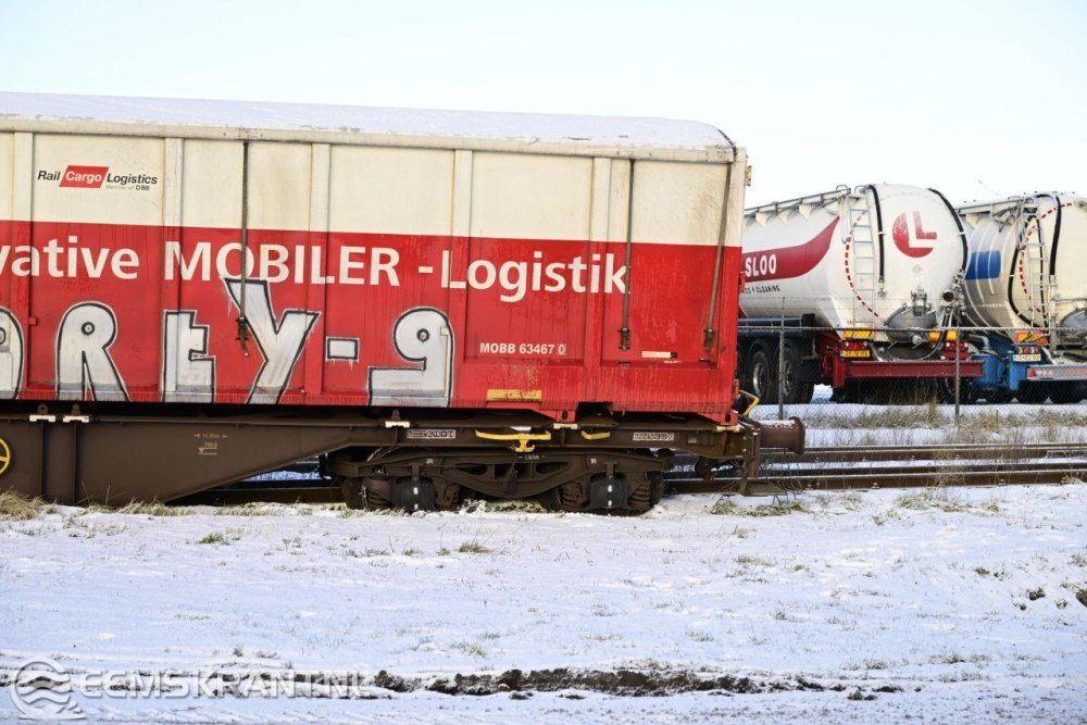Wagon van goederentrein ontspoord op het Metaalpark in Farmsum