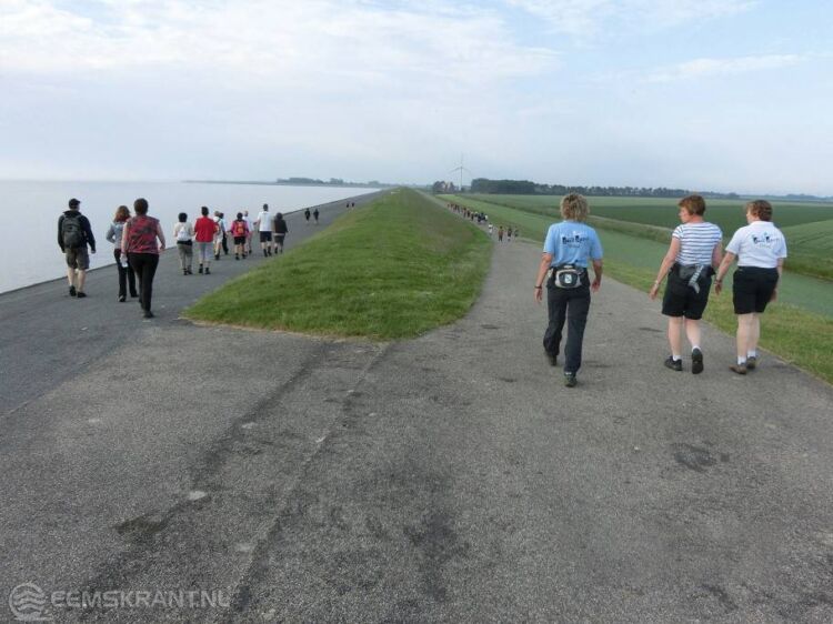 De start van deze plm. 12 km. lange wandeltocht vindt rond 7.20 u. plaats bij de dijkopgang nabij de Eemshaven en verwacht wordt dat omstreeks 9.15 u. de eerste wandelaars de finish bij het Eemshotel zullen bereiken.