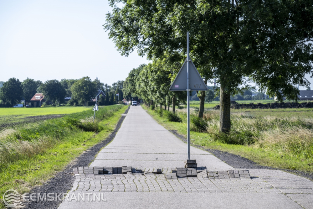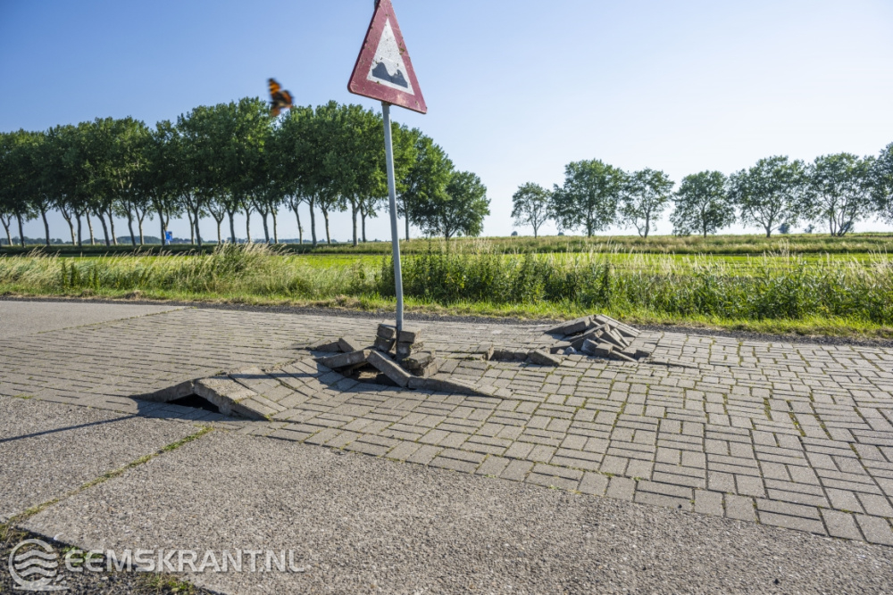 Nieuwolda – De afgelopen dagen is het warm weer met temperaturen rond de 28 graden. Dit heeft ook invloed op de wegen. Op de Wagenborgerweg, tussen Wagenborgen en Nieuwolda, zijn de klinkers omhoog gekomen, wat voor automobilisten en motorrijders een onverwacht obstakel vormt.