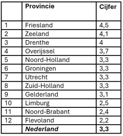 - Landelijk gezien vallen de cijfers tegen. Ook de best scorende gemeente in de provincie Groningen haalt landelijk niet eens de top 50.