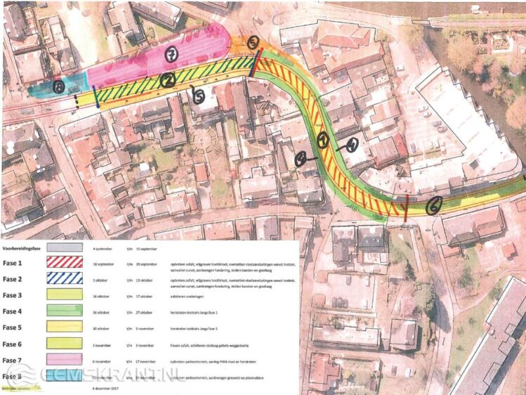 Appingedam – In opdracht van de gemeente Appingedam start Schagen Infra binnenkort met werkzaamheden aan het Bolwerk in Appingedam. Tussen begin september en eind november wordt de weg gereconstrueerd. De werkzaamheden zijn in acht fases opgedeeld. Om deze werkzaamheden te kunnen uitvoeren wordt de weg afgesloten voor doorgaand verkeer van 18 september tot 20 oktober. In de bovenstaande tekening kunt u zien welke werkzaamheden op welk moment en op welke locatie verrichten worden.