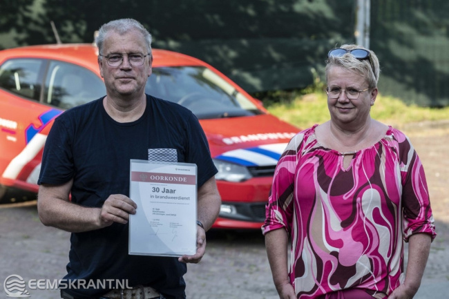 Willem zijn opvolger staat al klaar, zijn zoon Thijs Spijk heeft recent zijn brandweer opleiding afgerond. Donderdagavond werd er door de blusgroep, waar Willem deel van uit maakt, op een ludieke manier afscheid genomen. Willem mocht samen met zijn zoon Thijs in bijzijn van familie en vrienden zijn laatste brandje blussen. Na die tijd werd er op de kazerne nog even nagezeten. Willem ontving uit handen van Ingrid van Elst, teamleider brandweerzorg Veiligheidsregio Groningen, nog een oorkonde voor 30 jaar brandweerdienst.