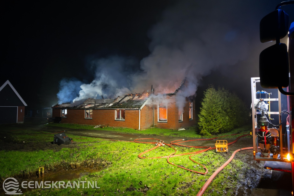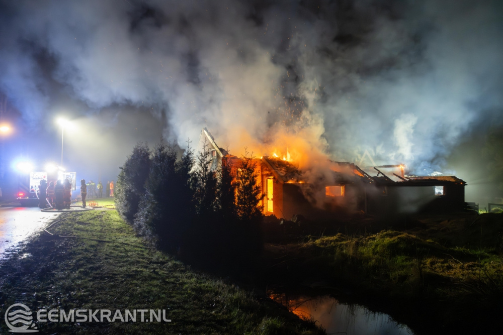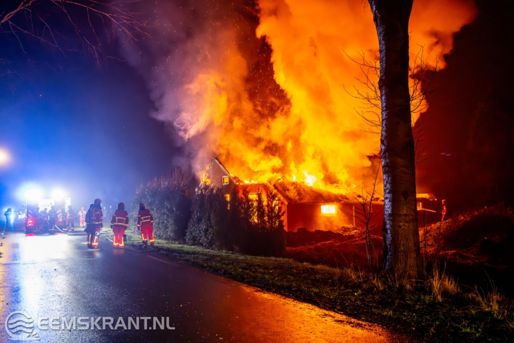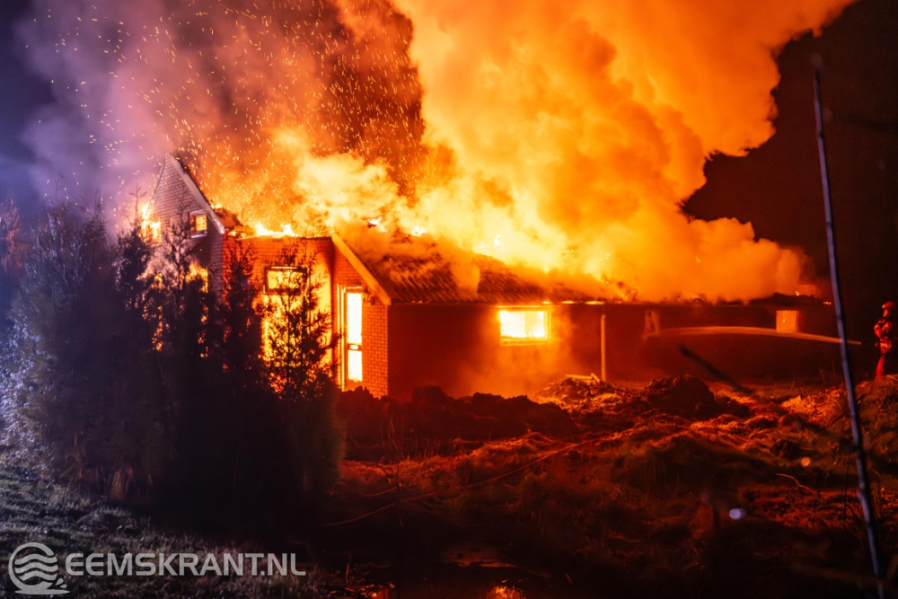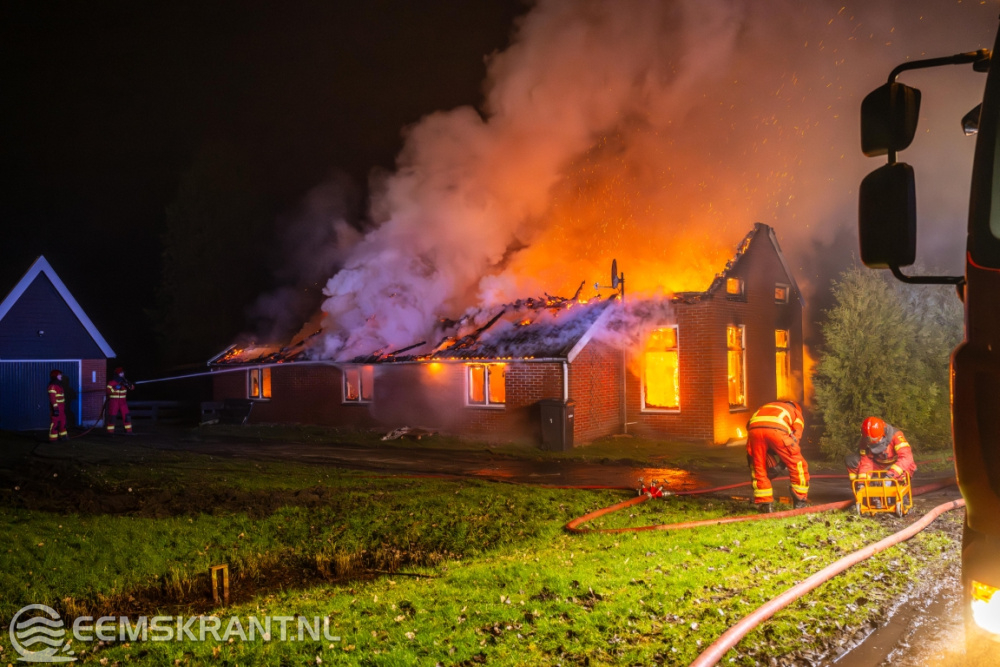 Tjuchem – In de nacht van dinsdag op woensdag is een woning aan de Hoofdweg in Tjuchem volledig verwoest door een brand. Bij aankomst van de brandweer bleek het pand al volledig in lichterlaaie te staan.