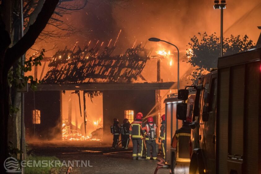 De brand brak rond 00.45 uur uit en werd al snel opgeschaald naar zeer grote brand. De brandweer was met meerdere voertuigen uit de regio aanwezig om de brand te bestrijden.