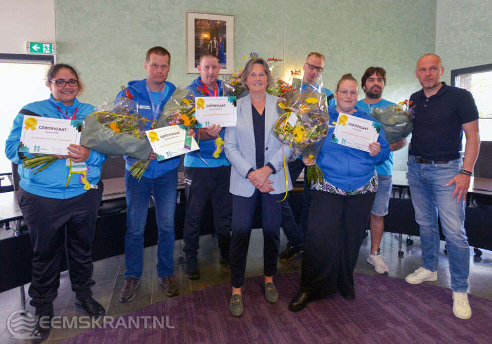 Winsum – Op donderdag 4 juli huldigde sport wethouder Karen Hansems zes zwemmers en hun coaches van Stichting de Brug Noord-Groningen. Dit deed ze in de raadzaal van het gemeentehuis in Winsum. Deze zwemmers uit onze gemeente waren zeer succesvol tijdens de Special Olympics Nationale Spelen 2024 en behaalden meerdere medailles.