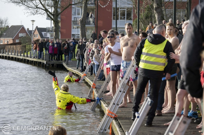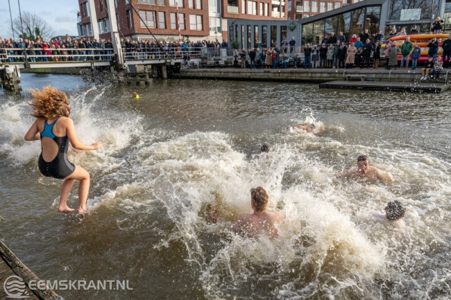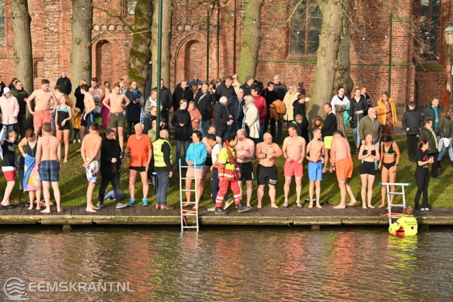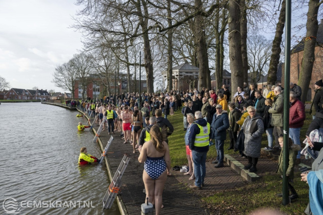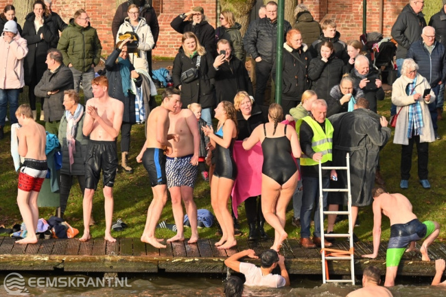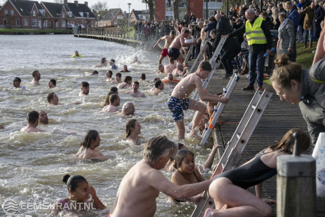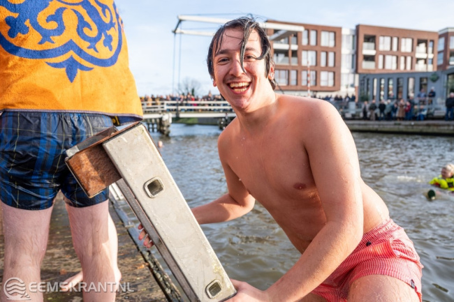 Appingedam – Ruim zestig mensen hebben zondagmiddag meegedaan aan de Nieuwjaarsduik Koud Kunstje in het Nieuwe Diep achter de Nicolaïkerk in Appingedam. Het waren bijna lenteachtige weersomstandigheden met een buitentemperatuur van rond de twaalf graden. De deelnemers konden zich inschrijven en omkleden in café De Doofpot. Het deelnemersaantal aan de Nieuwjaarsduik groeit gestaag, dit jaar waren het er twintig meer dan in 2021.