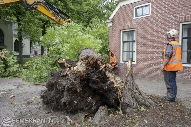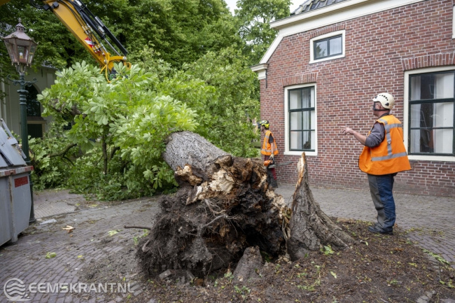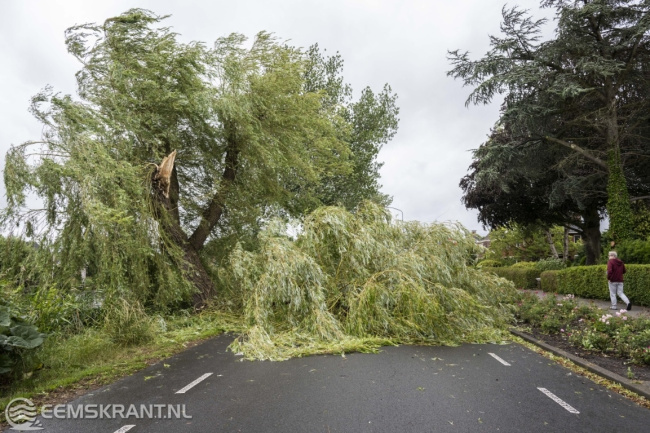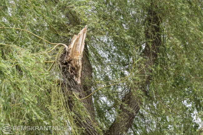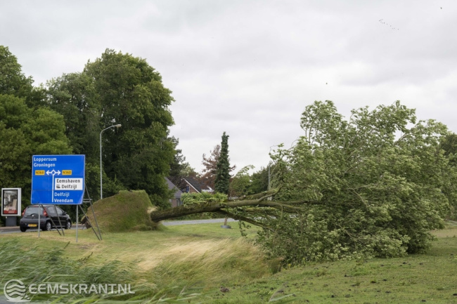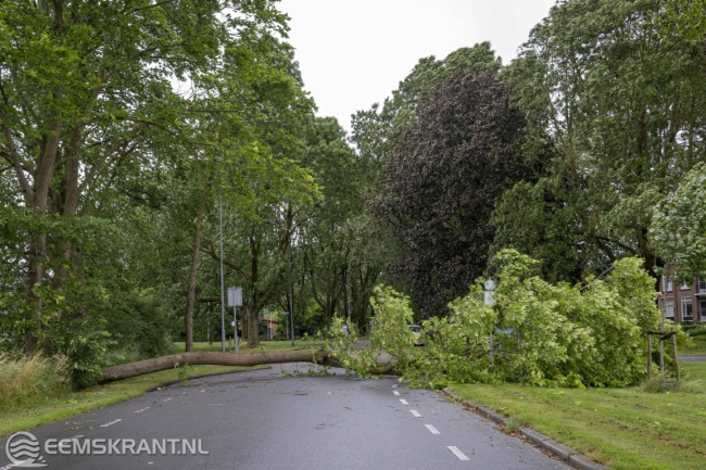 Eemsdelta – Vandaag raasde zomerstorm Poly over het land, met aanzienlijke schade en overlast tot gevolg. Op verschillende plaatsen in het land werden mensen getroffen door vallende bomen, waarbij helaas ook een persoon om het leven kwam. Ook in Groningen zorgde de storm voor de nodige problemen, met omgewaaide bomen en losgewaaide gevelplaten en stenen.