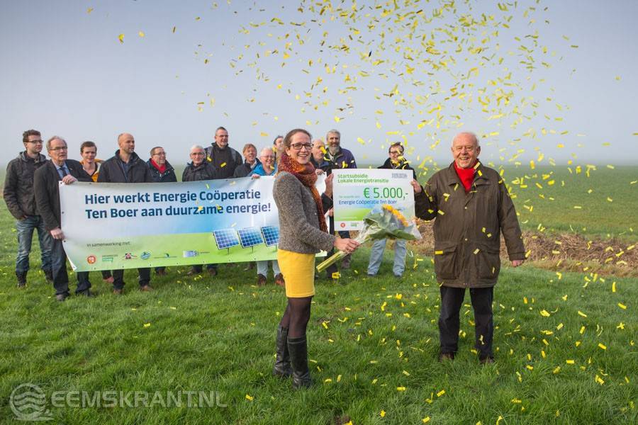 Ten Boer – Energie Coöperatie Ten Boer i.o. ontving op 25 november als eerste initiatief een bijdrage vanuit de subsidieregeling Lokale Energietransitie. De regeling is opengesteld vanuit Kansrijk Groningen, het leefbaarheidsprogramma van de Nationaal Coördinator Groningen, om lokale energie-initiatieven in het aardbevingsgebied te ondersteunen.