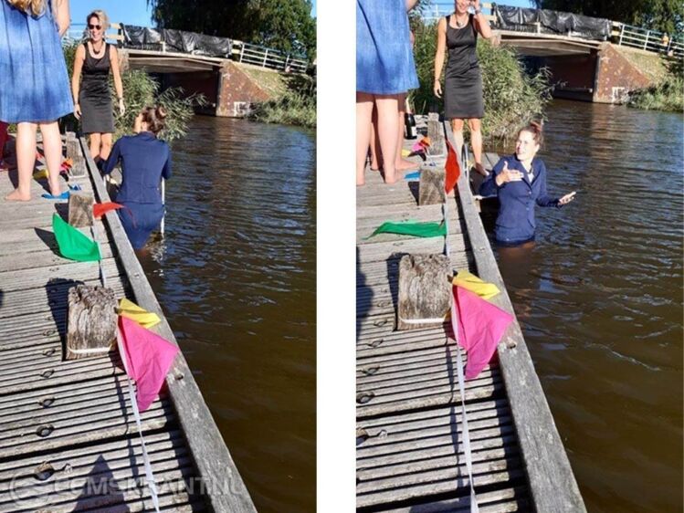 Losdorp – Afgelopen zondagmiddag werd met een duik in het Losdorpstermaar werd officieel de nieuwe zwemtrap in gebruik genomen. Wethouder Jan Menninga van de gemeente Delfzijl was aanwezig bij de opening die werd verricht door de initiatiefnemers Tessa Meijer en Debora van Zeebroeck .